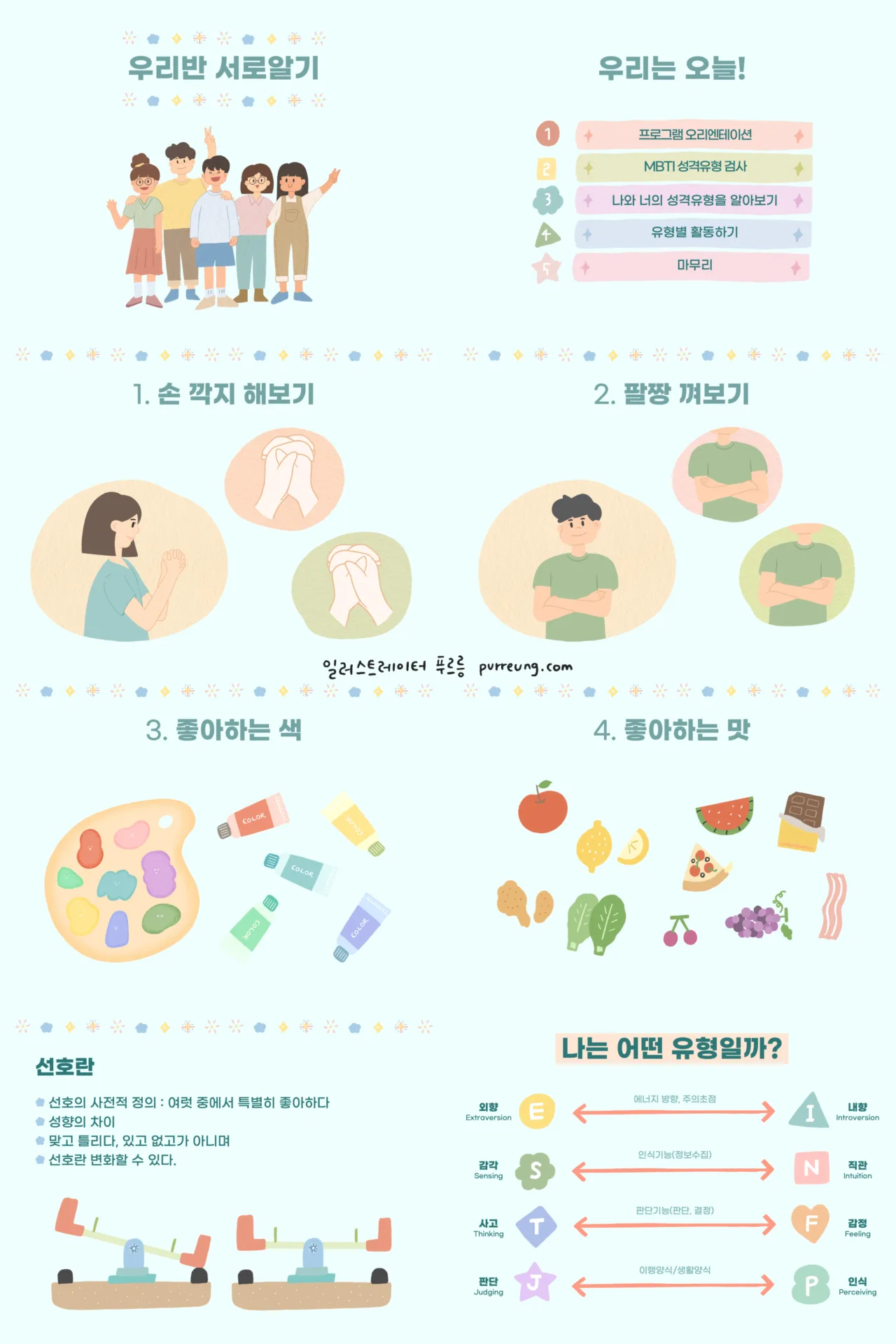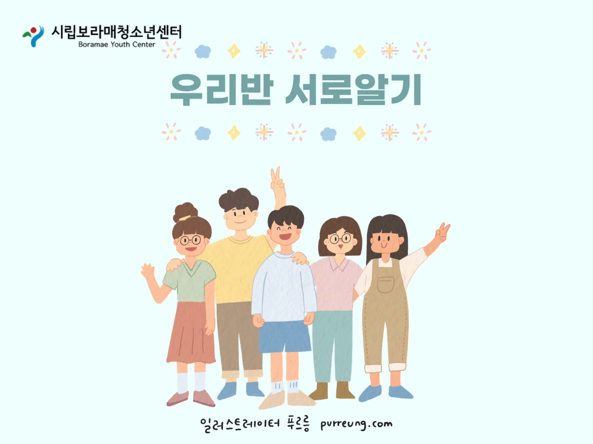 서울시립보라매센터의 교육용 PPT 및 자료에 들어갈 일러스트를 작업했습니다. 청소년을 대상으로 하는 자료이기 때문에, 다양한 캐릭터의 개성을 살렸고, 긍정적이고 밝은 분위기의 색감을 사용했습니다.